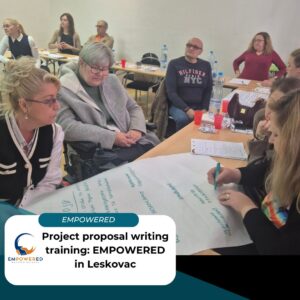 Od 9. do 11. decembra 2025. godine, u Centru za stručno usavršavanje u Leskovcu, održana je trodnevna obuka za pisanje projektnih predloga za osobe sa invaliditetom, u okviru regionalnog projekta Osnaženi (EMPOWERED). Nosilac aktivnosti bio je IDC, u svojstvu partnerske organizacije za Republiku Srbiju, dok je stručno izvođenje obuke povereno Udruženju građana Forum mladih sa invaliditetom (FMI).